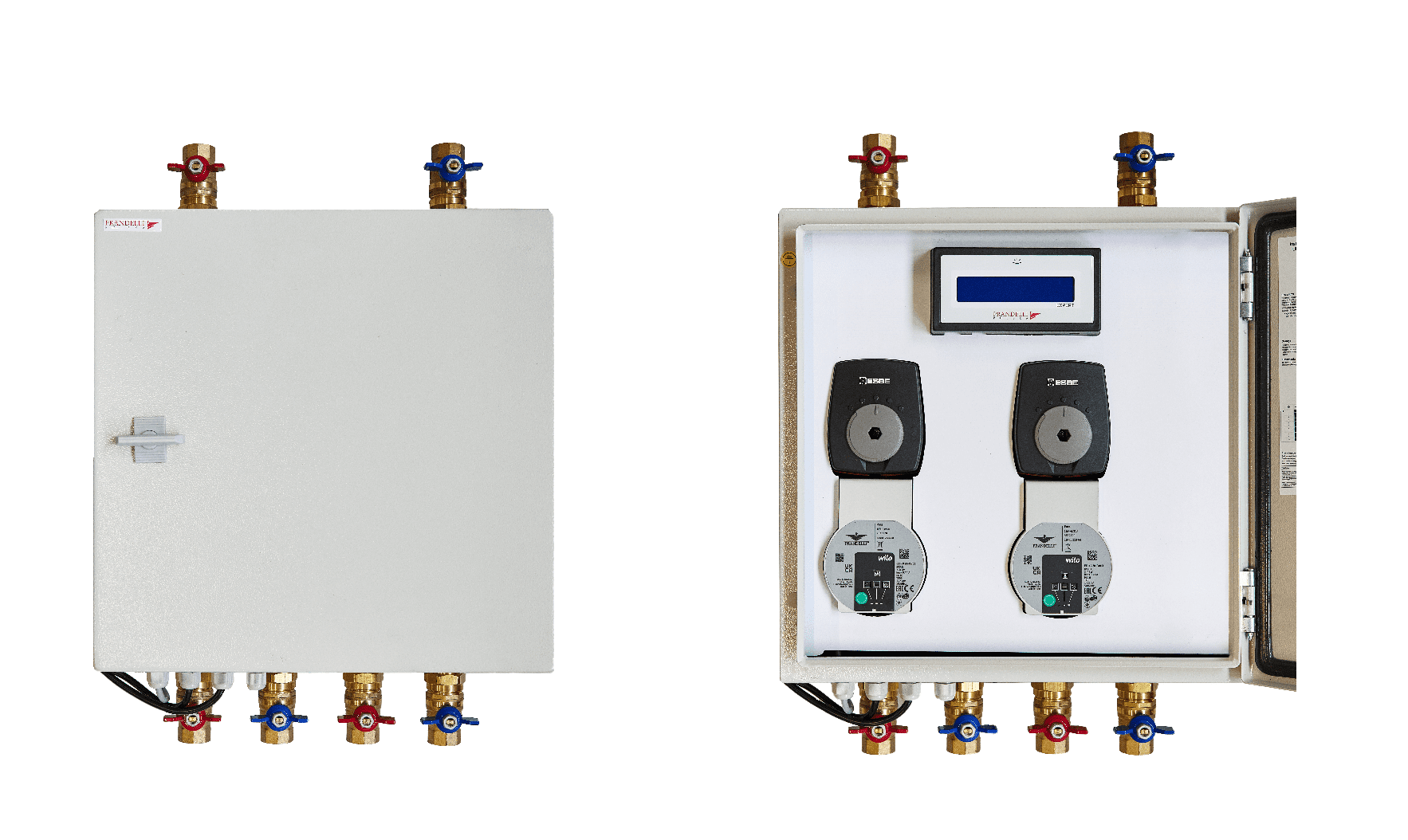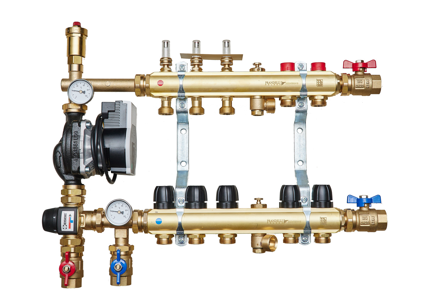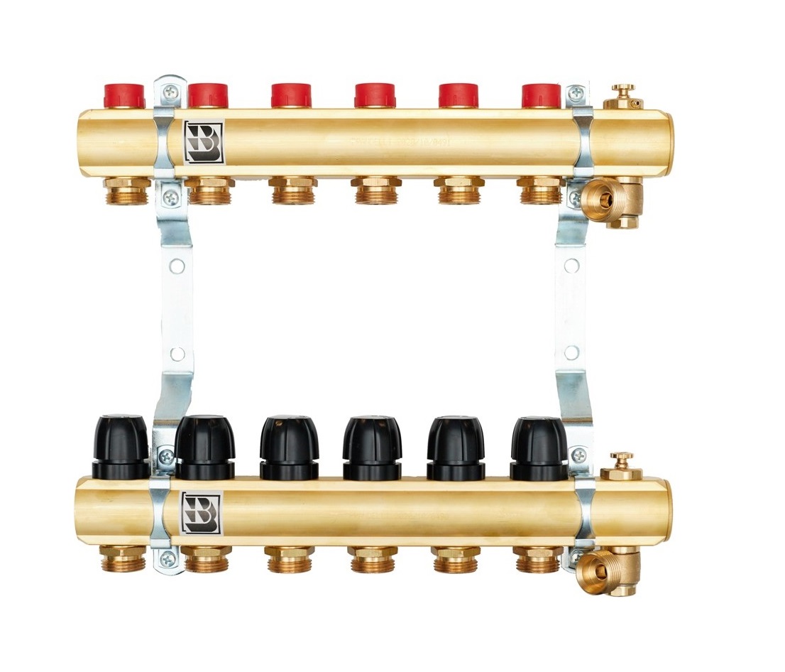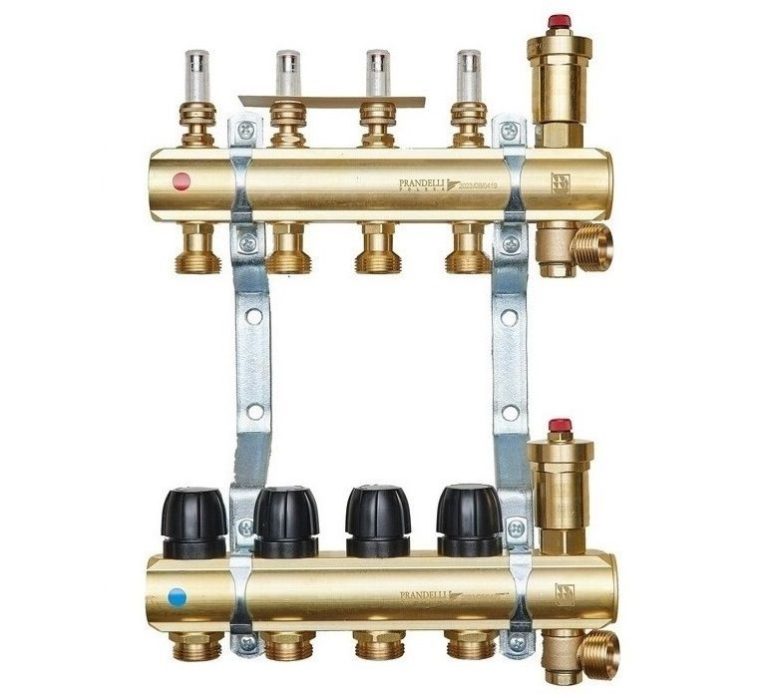 Rozdzielacze mosiężne oraz zestawy pompowe do ogrzewania podłogowego z rotametrami magnetycznymi