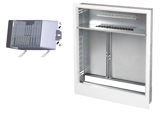 Centralkę najłatwiej zamontujemy na listwie DIN w szafce do rozdzielacza DUOBOX wyposażonej w półkę na sterowanie.