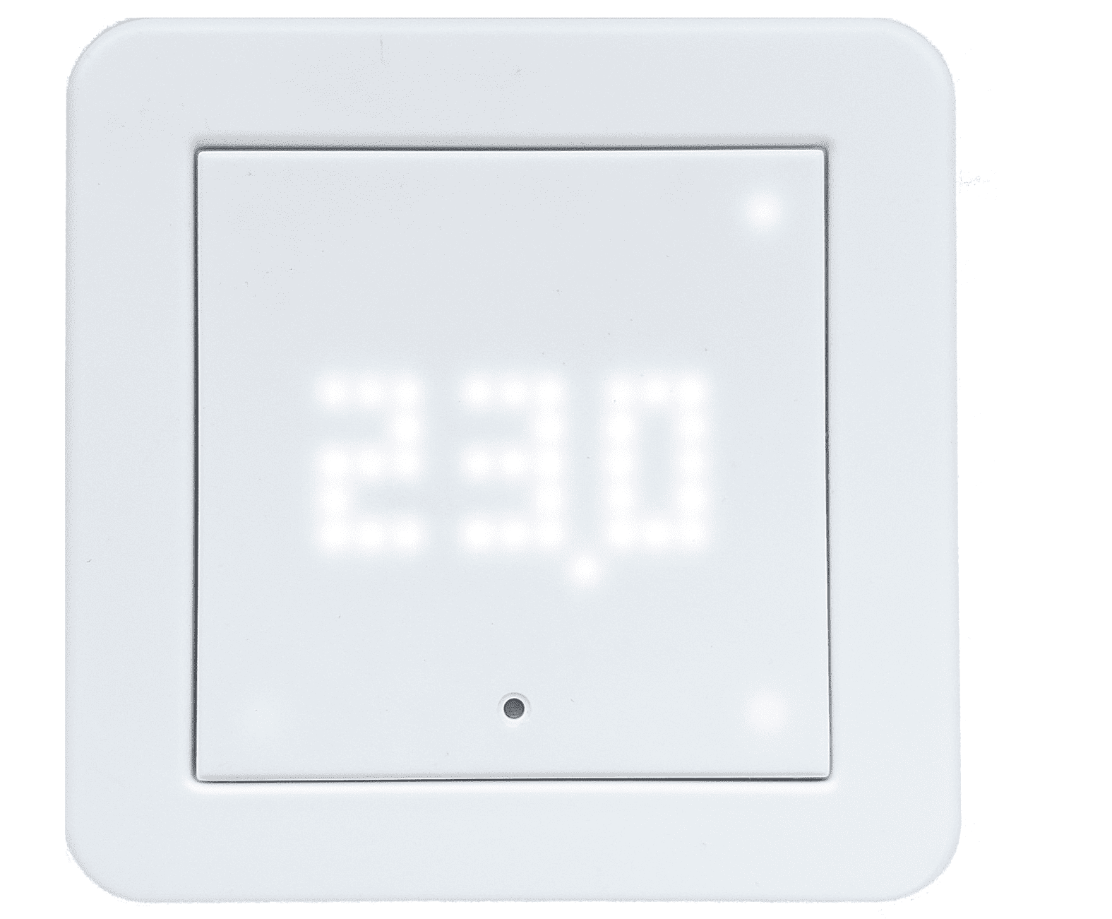 Czujnik umożliwia pomiar i zmianę temperatury, a ponadto pokazuje aktualną temperaturę, wskaźnik jakości powietrza (IAQ) i poziomu dwutlenku węgla w pomieszczeniu.