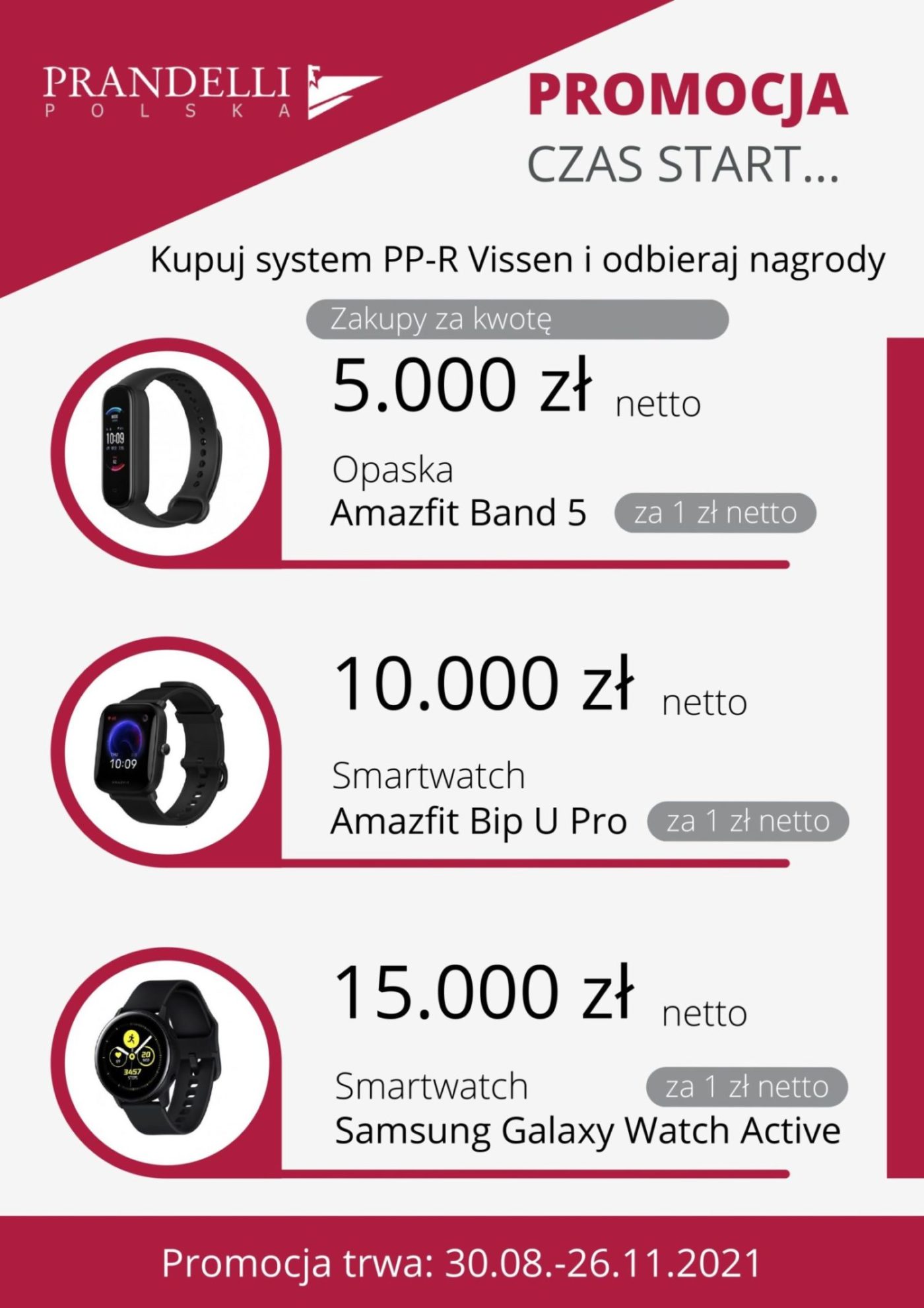 Aby wziąć udział w promocji, wystarczy w okresie jej trwania dokonać zakupów elementów systemu PP-R Vissen  za łączną kwotę 5,10 lub 15 tys. zł.
