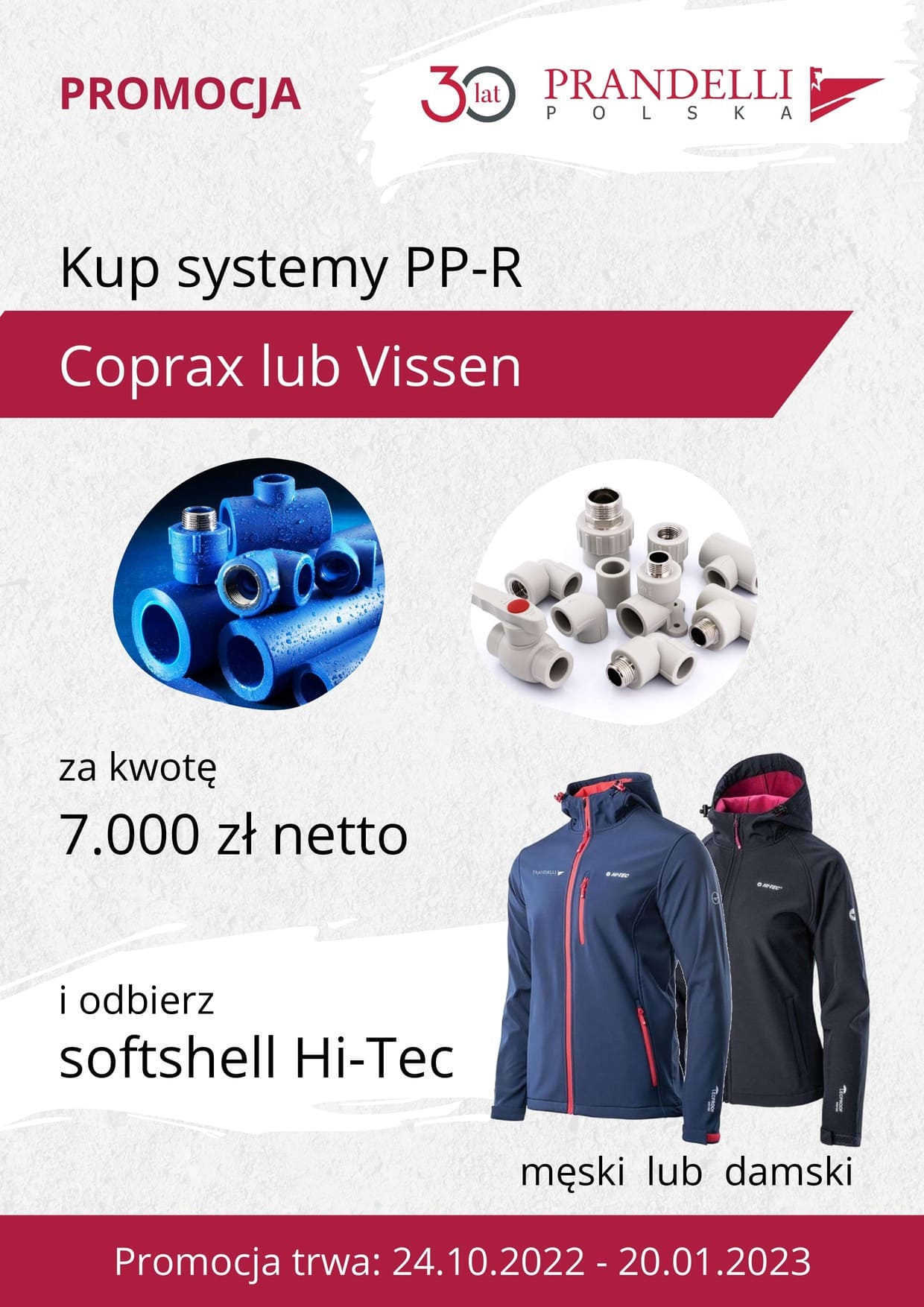 Dokonaj w okresie trwania promocji zakupów systemów zgrzewanych PP-R – Coprax lub Vissen – za kwotę 7.000 zł i odbierz atrakcyjną nagrodę – softshell firmy Hi-Tec.
