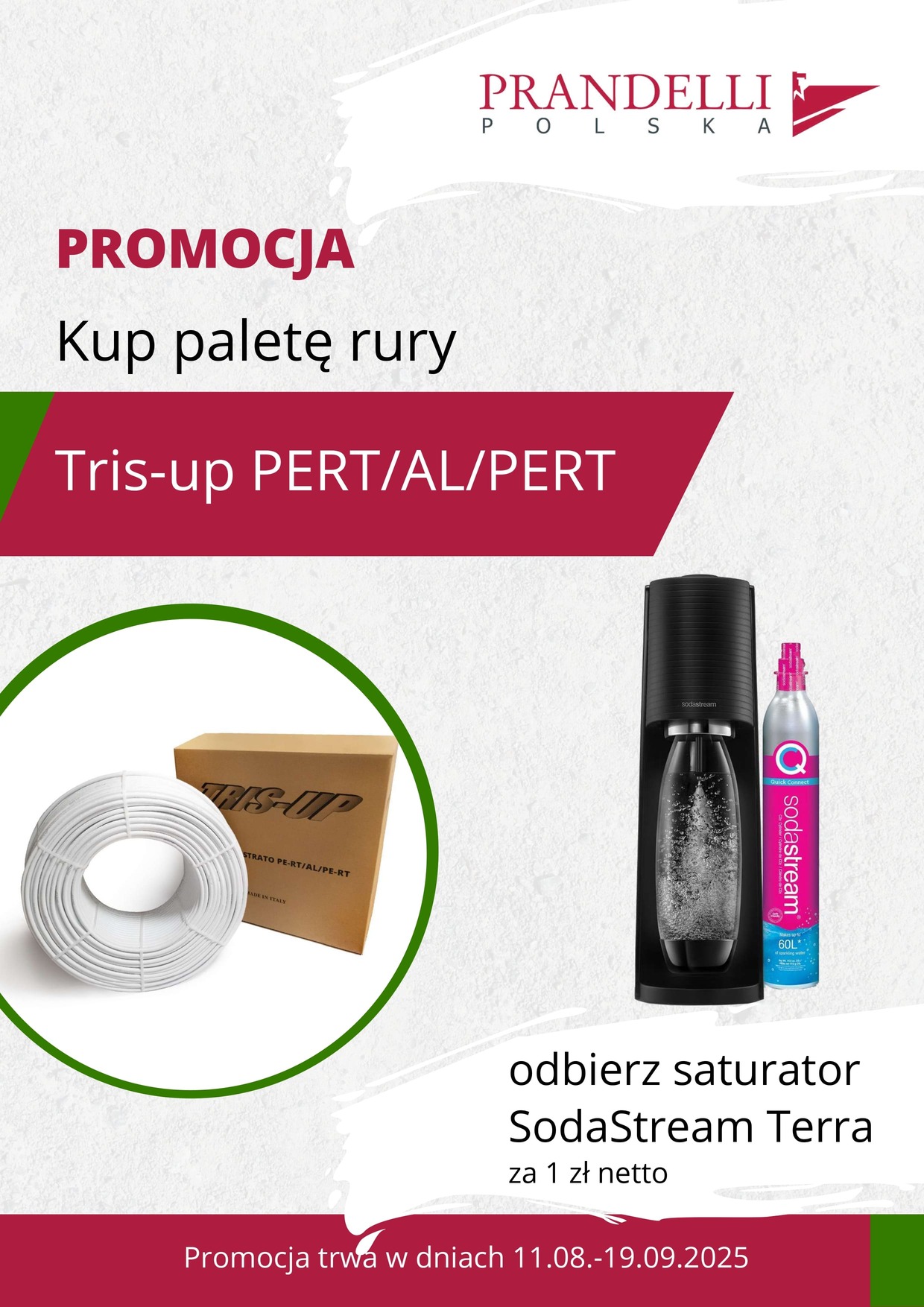 Przy zakupie palety rury Tris-up PERT/AL/PERT saturator SodaStream Terra za 1 zł netto!